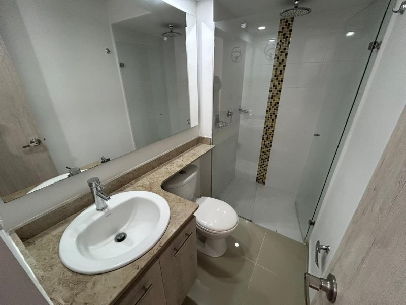 Cuenta con 3 habitaciones (todas con clóset), 2 baños cabinados, sala-comedor con acceso a balcón, cocina integral equipada con extractor, horno y barra americana, además de parqueadero privado y cuarto útil.