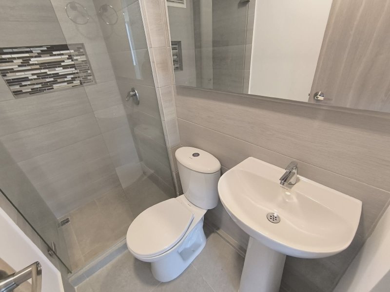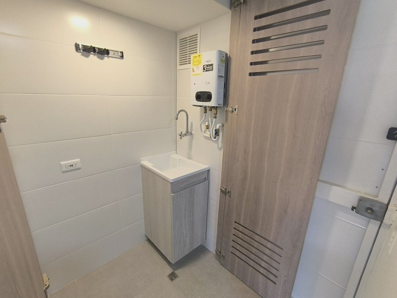 Cuenta con 2 habitaciones con clóset, 2 baños cabinados, sala-comedor, balcón, biblioteca o estudio, cocina integral equipada con barra americana y extractor, red de gas con calentador, parqueadero y zona de ropas.