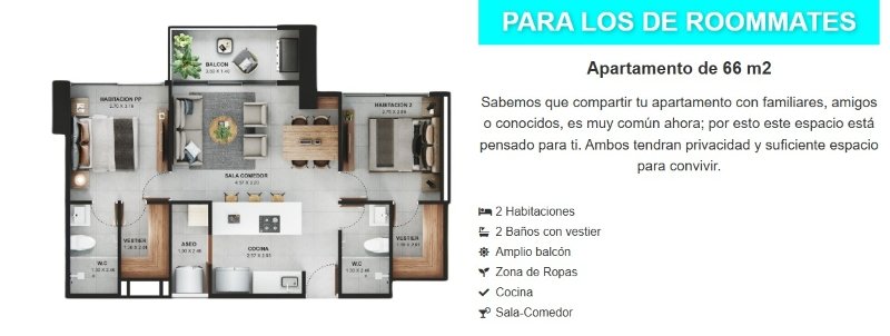 Este apartamento tiene 66.31 m²; se encuentra ubicado en el sector Sabaneta Real, al lado de Calle Larga, Sabaneta (Ant), con fácil acceso y cercanía al Hospital Venancio Díaz, Estación La Estrella del Metro, Farmatodo y el parque principal de Sabaneta, en una zona de alta valorización, cercana a universidades, centros comerciales y transporte público.